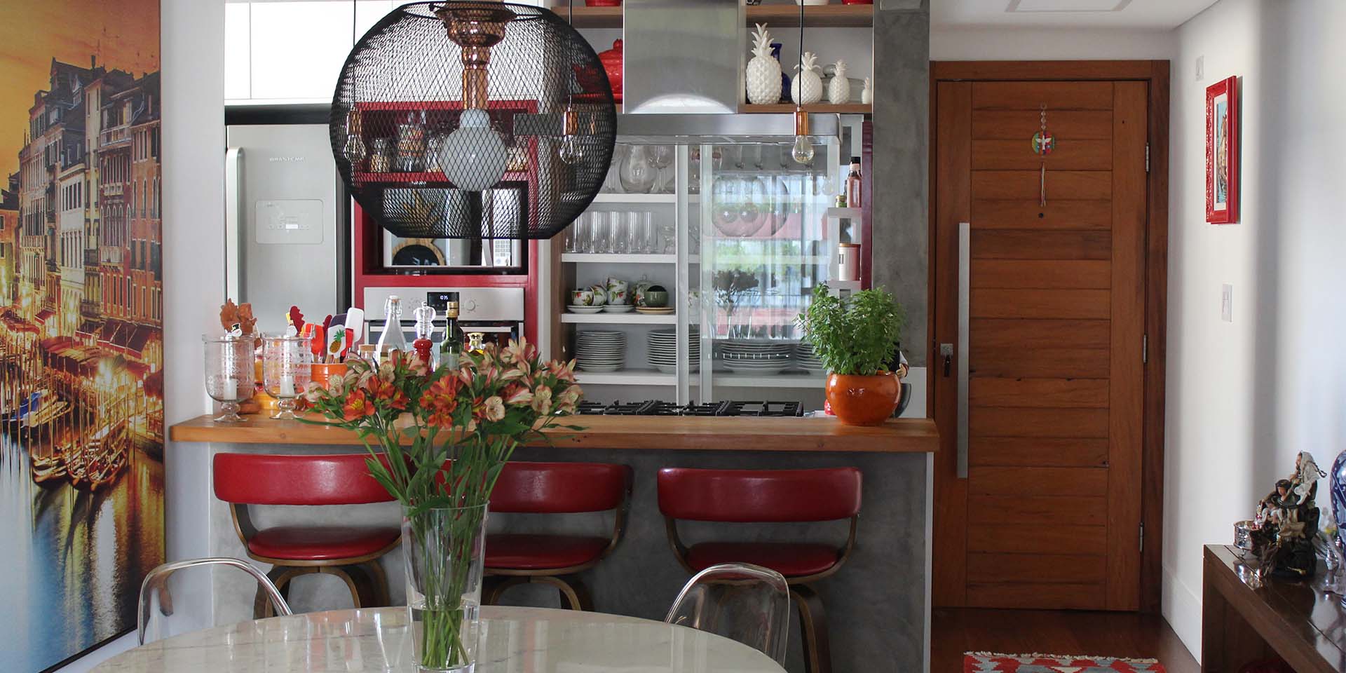 O desafio deste projeto era solucionar todo o layout colocando todos os móveis, equipamentos e objetos e decoração do casal em uma área bem reduzida. E o resultado, segundo os clientes, foi o melhor possível!!
